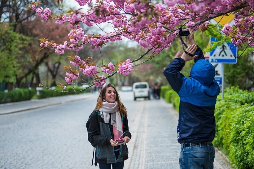 На конец апреля и майские праздники взять билет на поезд в направлении Ужгорода почти нереально. Бронировать места надо месяца за полтора. Виной всему - буйное цветение сакуры, которое начинается в этом небольшом областном центре, расположенном на самом западе Украины. Тысячи туристов со всех концов съезжаются, чтобы посмотреть на великолепное зрелище, символизирующее в японской традиции человеческую жизнь - хрупкую, прекрасную, быстротечную.