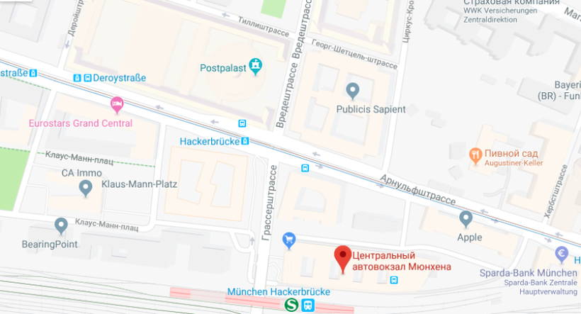 Путь до Мюнхена автобусы в среднем проезжают за 7,5–8,5 часов и прибывают на центральный автовокзал Мюнхена на Arnulfstrasse 21.