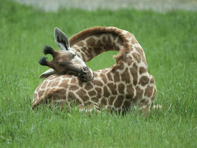 - Жирафы. Животное спит лежа, согнув шею калачиком. Визуально кажется, что шея вот-вот сломается.