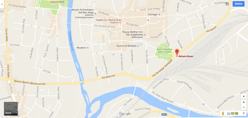 В Больцано вы прибудете на вокзал Bolzano Bozen, который находится на Piazza della Stazione 1, 39100.