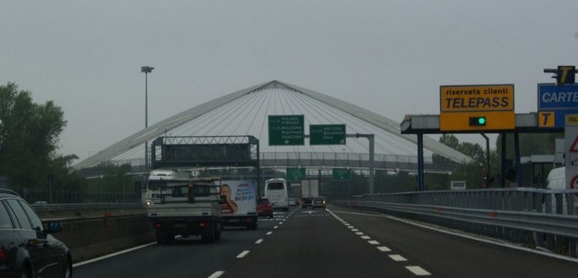 Подъезжая вы заметите желтую, синюю и две белых полосы. Эти полосы разделяют автолюбителей по методу оплаты. Желтая полоса - исключительно для клиентов Telepass, синяя полоса - только для кредитных карт и белая полоса - для наличных денег и кредитных карт. Стоимость проезда различная и зависит от типа вашей машины и от типа дорог. Более подробную информацию о дорогах в Италии можно узнать в этой статье. Подъезжая к Вене дороги были уже бесплатные. Трафик по дороге более ли менее свободный, машин много.
