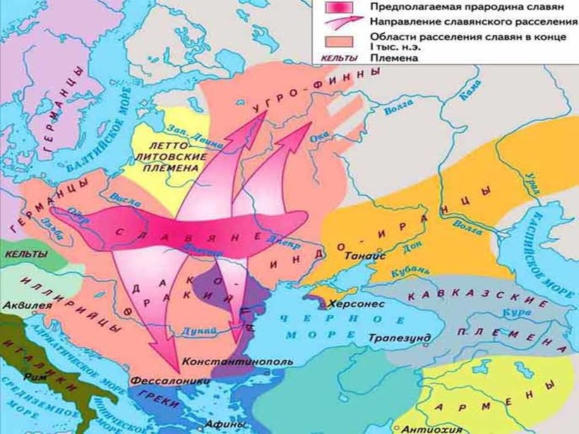 К 8 веку славянские народы проживали от Германии до Новосибирска, с запада на восток, и от Балтики до Греции, с севера на юг. Наши предки условно разделились на три группы: