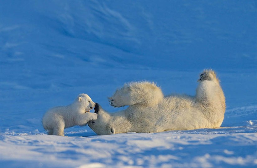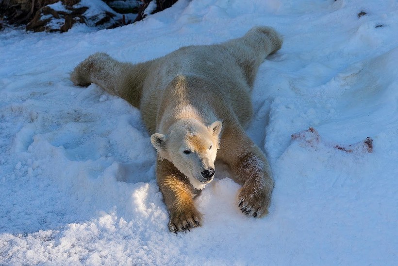 Косолапые просто обожают ледяную воду и экстремально низкие температуры. А вот летом они чувствуют себя хуже. В зимнюю спячку, в отличие от своих бурых собратьев, они не впадают. Просто могут иногда дольше поспать, но это не спячка (температура и сердцебиение во время этого сна у белых медведей не меняется, как это происходит с остальными видами медведей). Единственное, что в спячку на месяц-два могут залечь беременные самки.