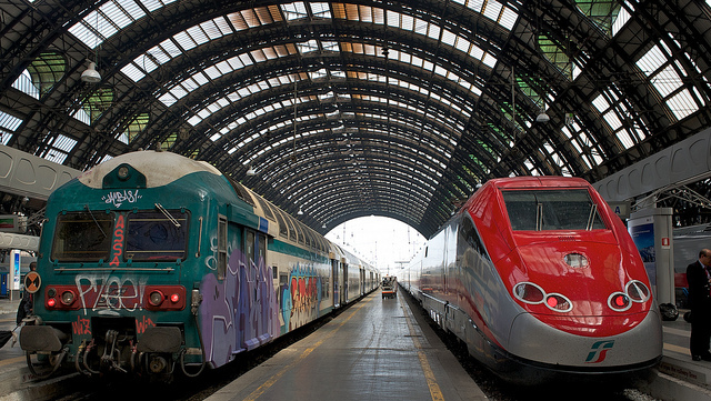 Поезда начинают ездить с 5:56, их очень много, иногда даже ездят каждые 10 минут. По маршруту ходят поезда Regionale, время в пути 60-80 минут, и скоростные Frecciabianca, Frecciarossa, едут 40 минут. Об их отличиях можно прочитать здесь.