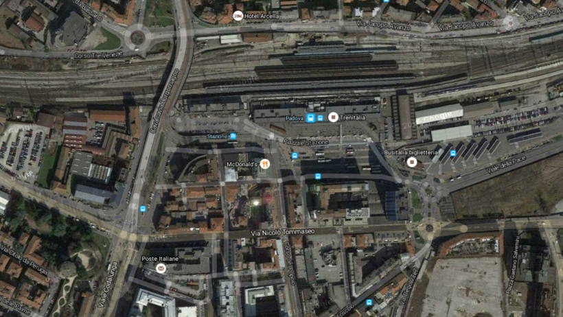 Прибывает автобус на автостанцию Padova Autostazione (адрес: Piazzale Stazione, 14), рядом с ней стоит здание железнодорожного вокзала. Здесь и можно сесть на поезд в Верону. В Вероне несколько станций, но вам нужна Verona Porta Nuova (адрес: Piazzale 25 Aprile), рядом с ней есть автостанция, автобусы ездят во все уголки города.