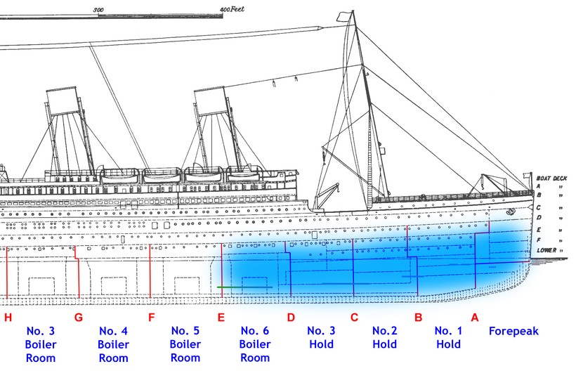 Титаник практически был непотопляемый корабль. Это как небоскрёбы ВТЦ были практически необрушиваемые. Вот цитата: "Наиболее интересной конструктивной особенностью лайнера являлись его водонепроницаемые переборки. Титаник имел двойное дно и был разделен на 16 водонепроницаемых отсеков пятнадцатью водонепроницаемыми переборками" Нужна была практически фантастическая причина, при которой было бы повреждено критическое количество водонепроницаемых переборок - именно, это критическое количество переборок и было повреждено! - Как по заказу! Как "саморасплавление" центрального сердечника небоскрёбов. Далее спросите себя, какая-нибудь официальная печать дискутирует версию подрыва корабля изнутри? - Нет. Аналогичная ситуация и с небоскрёбами ВТЦ - официальная версия и её настойчивые пропагандисты даже её не упоминают. То же самое и с Титаником - версия потопления немецкой подлодкой есть, тем более что через несколько лет немцы потопили "Луизитанию"; - но тогда была уже давно война и "Луизитания" была переоборудованным военным кораблём. Однако, заметьте, что желание подставить немцев, как и мусульман, было. Однако в случае с Титаником немцев никак подставить было нельзя. На месте кораблекрушения, немецких паспортов с книгой на немецком языке по подрыву круптоннонажных судов не плавало. Спросите себя, если вы плывёте на корабле и вдруг страшный удар и вы слетаете с койки, как вы в своей каюте определите, - это взрыв в трюме или удар о препятствие? - В том то и дело, что НИ-КАК!!! То есть, если вы даже плыли на этом Титанике и уцелели, - это не даёт вам, даже за приличный гонорар, никакого права утверждать, что вы видели некий "айсберг", тем более, что это была ночь; и скоро без электричества, ночью, посередине Атлантического океана, стало не видно даже собственнного тела. Кромешная тьма! Не забывайте, что в отличие от съёмок фильмов, - места ночных катастроф в океанах обычно не освещаются и в 0 - градусной воде человек сразу парализуется и колом идёт ко дну, а не разговаривает со своей возлюбленнной по 15-минут. То есть в настоящей следственной практике неумолимо, возникает версия: "а был ли мальчик"? - А был ли айсберг? Итак, если Титаник был взорван изнутри, то остаётся только найти вескую причину. В таких делах всегда присутствует "фактор страховки". Однако, в отличие от изношенных небоскрёбов, не забывайте,что Титаник был только что построен. Отсюда нет никакого резона топить новый корабль, чтобы получить страховку. Значит, так: если, как 11 сентября 2001 года, повод начать войну и одновременно урвать двойную страховку отпадает, то остаётся только один резон - убрать человека, убрать человека, убрать человека, убрать человека, убрать человека ....Что это должен быть за человек, чтобы его стоимость была больше стоимости Титаника? - Это НЕЧЕЛОВЕК - это бесценная египетская мумия и вероятность разглашения тайны пришельцев, которою она НА себе имела. Эта мумия несла на себе критическую информацию. ". Однако, мумия, по моему, даже проскользнула в фильме Камерона, мельком, не отвлекая зрителей от романтической любви. Главный довод против мумии на корабле тот, что такого зарегистрированного груза не было. Всё, более ничего. Однако, послушаем историю мумии. Перевод со статьи в Вики: "Проклятие мумии: Это мумия принцессы фараона Амена-Ра, жившая около 1050 до нашей эры,