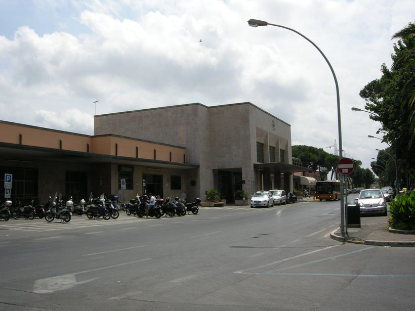 Вокзал в Виареджио расположен на улице Piazzale Dante Alighieri 41. Добраться на вокзал можно из любой части города на такси или автобусе, остановка которых расположена прямо напротив входа в здание. На станции есть железнодорожные кассы, туалет, зал ожидания, полицейский участок и бар. Поезда в Лукку отправляются с 7 и 8 платформы. Здание вокзала с платформами соединено подземными туннелями. Очень понравились мне мониторы, которые в реальном времени показывают платформы с прибывающими и убывающими поездами. Удобно и понятно.