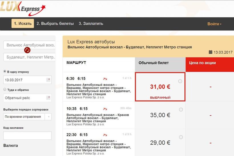 Из Вильнюса в Будапешт на автобусе Lux Express