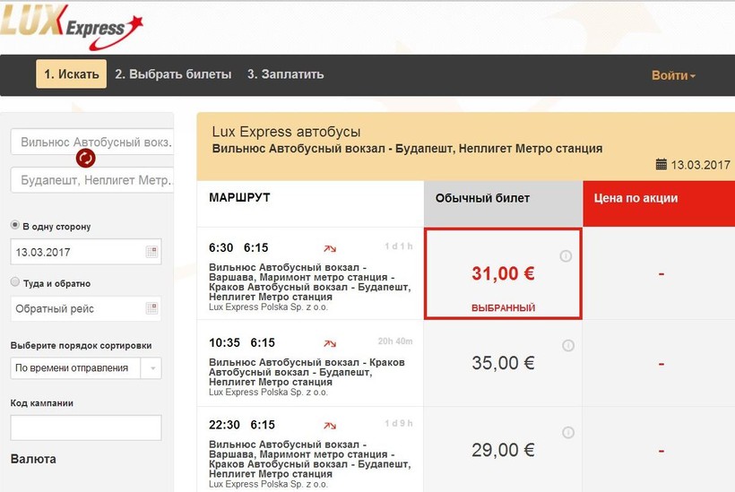 Билеты продаются в точках продаж компании Люксэкспресс или прямо на сайте.