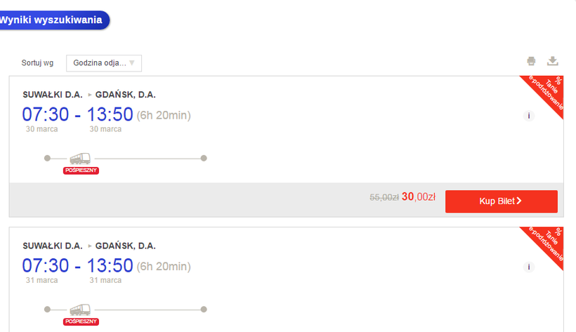 Из города Сувалки в Гданьск доступны автобусы от польской компании PKS.