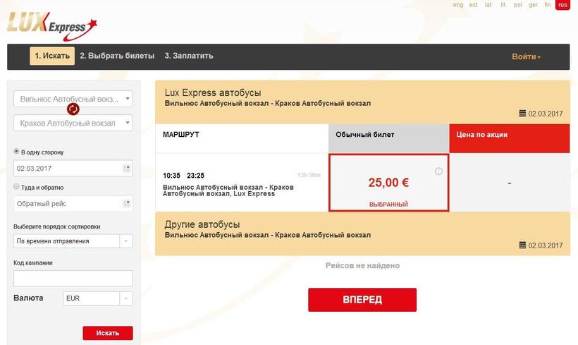Из Вильнюса в Краков на автобусе