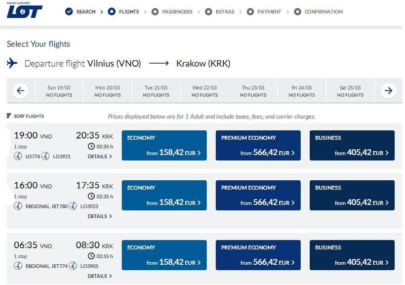 Несмотря на то, что прямых рейсов между этими городами нет, можно все же подобрать себе удобный по времени с небольшой стыковкой. Польская авиакомпания LOT совершает множество перелетов в день с одной пересадкой в Варшаве. Наиболее удачные с моей точки зрения – это рейсы, общее время перелет+ожидание+перелет у которых не более 3 часов. В зависимости от месяца, расписание у Лота меняется, поэтому смотрите свои даты на сайте перевозчика. Конечно, это самый затратный в материальном плане способ добраться до Кракова, но если вы спешите – лучшего и не придумаешь. Вылеты стартуют от Международного аэропорта Вильнюса по адресу Rodūnios kl. 10A, а заканчиваются в аэропорту Краков-Балице имени Иоанна Павла II на Kapitana Mieczysława Medweckiego 1 (15 км от центра города).
