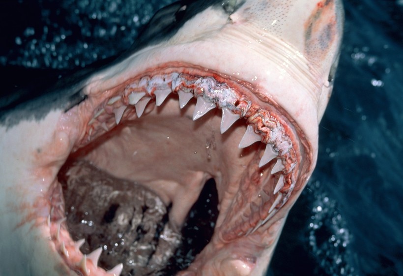 У акулы имеется много рядов зубов. В каждом из них примерно 300 зубов. При этом большинство рядов находятся в неприподнятом состоянии.