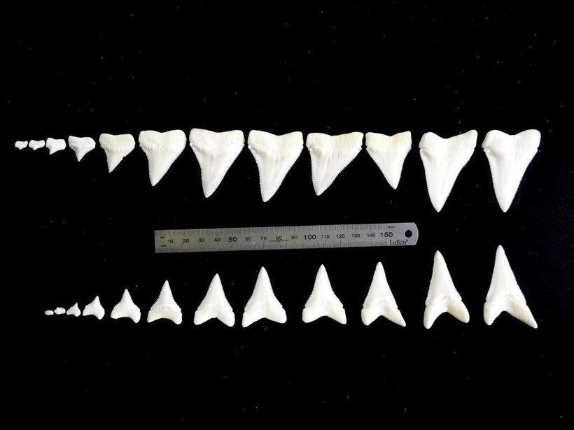 Если есть большой разбег в количестве зубов, то можно предположить, что все они разного размера. Крупнее всего (из ныне живущих рыб) резцы у большой белой акулы – они достигают 5 см в длину, абсолютный рекордсмен уже вымер – мегалодон обладал 15-сантиметровыми зубищами.