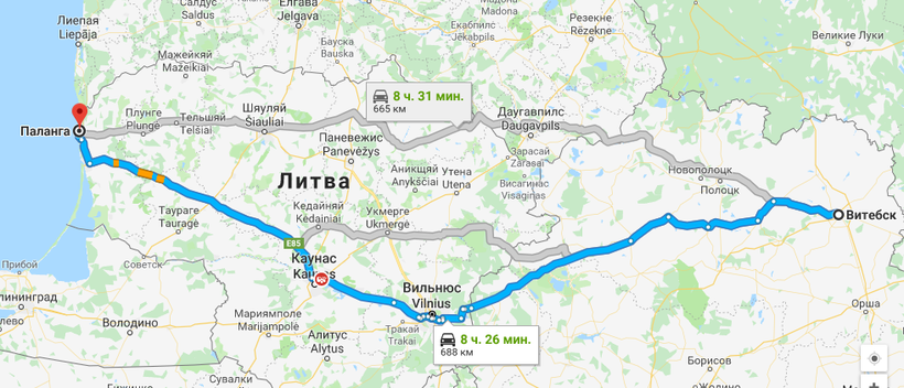 Витебск и Палангу разделяют 688 км и белорусско-литовская граница, которую я предпочитаю пересекать в пункте пропуска «Котловка». На своей машине расстояние между Палангой и Витебском я преодолеваю за 10–11 часов.