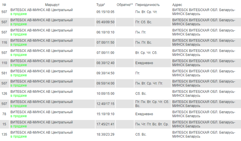 - выезд из Витебска в 07:00 и прибытие в Минск в 11:00;