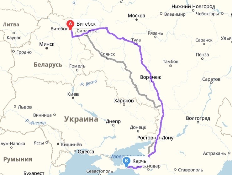 Витебск — Крым — маршрут на карте
