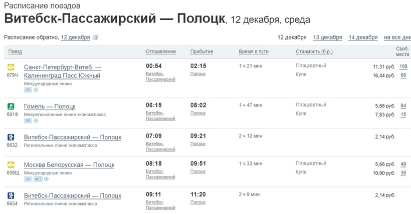 - за плацкарт придется выложить от 6 белорусских рублей;