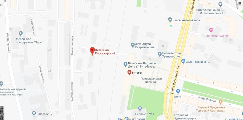 Купить билеты на любой поезд можно в кассе вокзала Витебска.