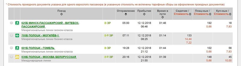 Цена билета в плацкартный вагон составляет чуть больше 5 белорусских рублей (чуть больше 2 евро) за место.