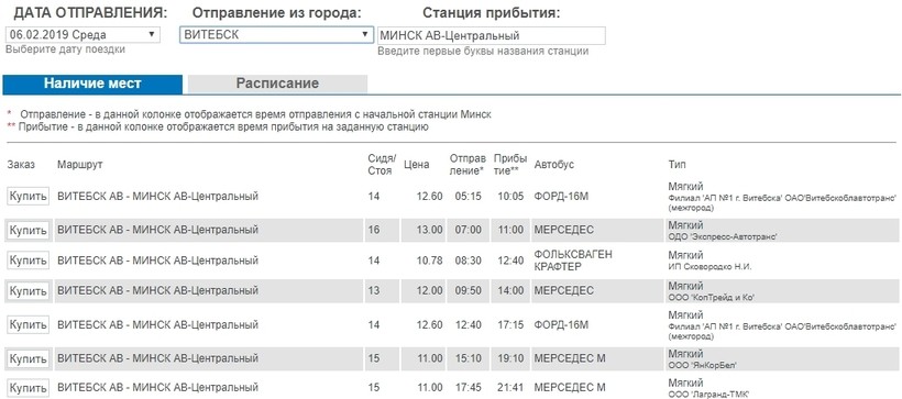 Автобусы в Минск стартуют с автовокзала Витебска.