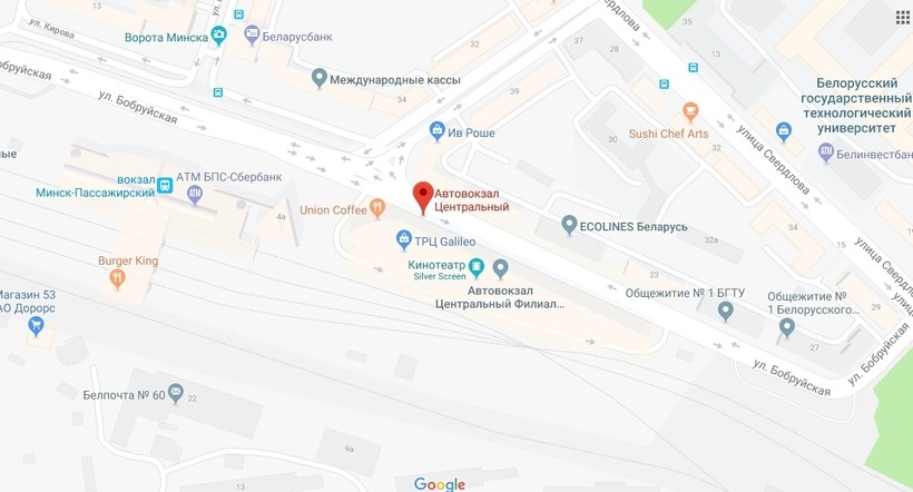 Ехать на автобусе в столицу придется четыре часа. Прибытие на Центральную автостанцию Минска.