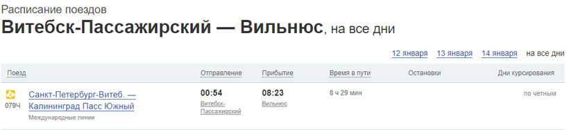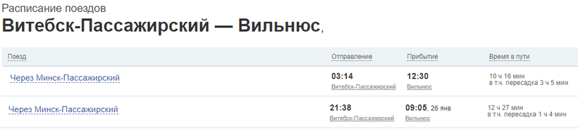 Кроме этого, поездами попасть в Вильнюс из Витебска можно через Минск.