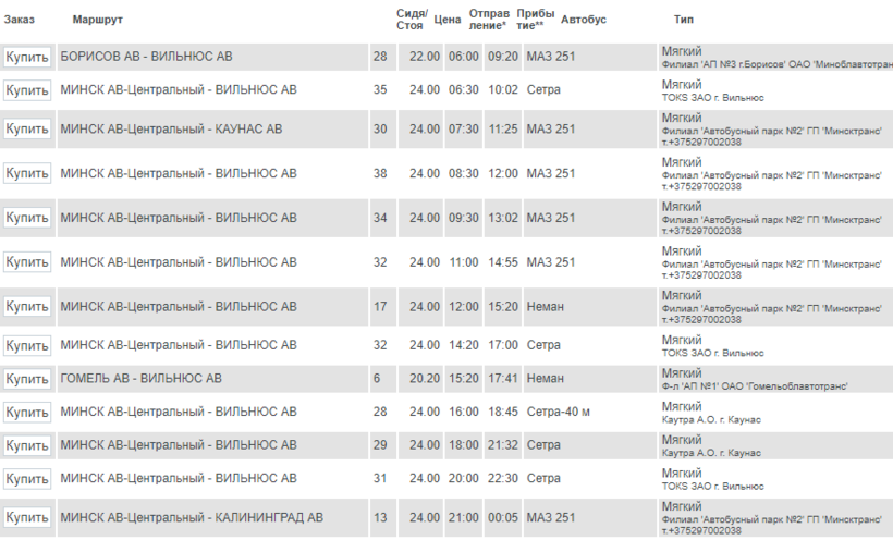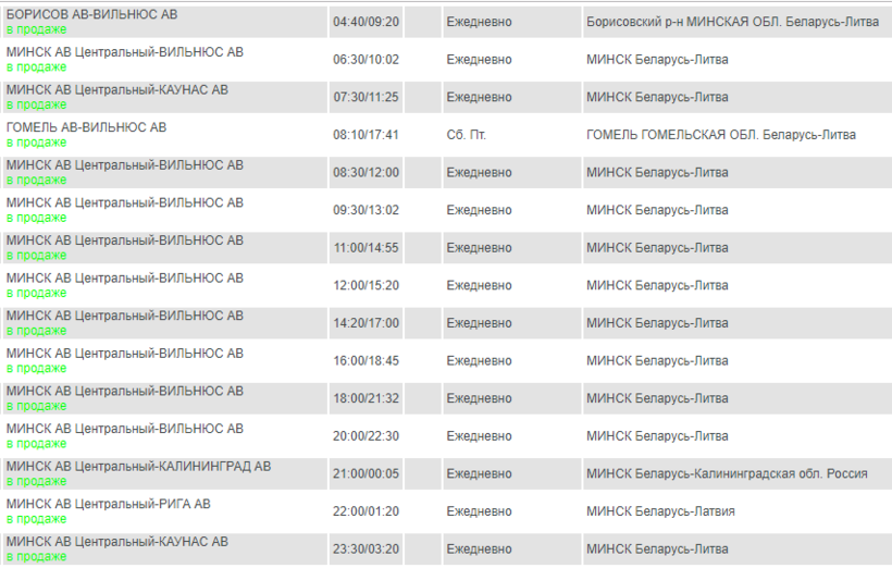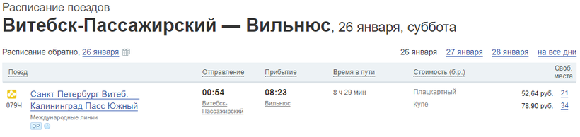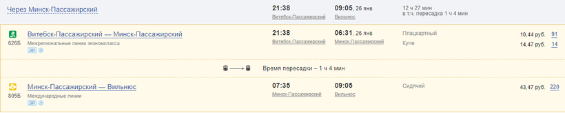 А стоимость проезда из Минска до Вильнюса — от 20,20 BYN или 630 руб.