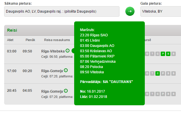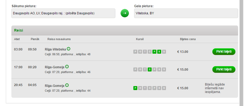Отправление такого транспорта в сторону Витебска проходит с главного железнодорожного вокзала Даугавпилса.