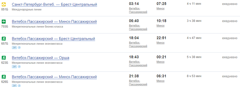 До Бреста из Витебска билет обойдется от 14,85 BYN (6 евро / 450 руб.).