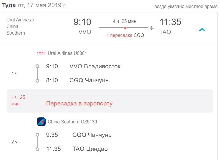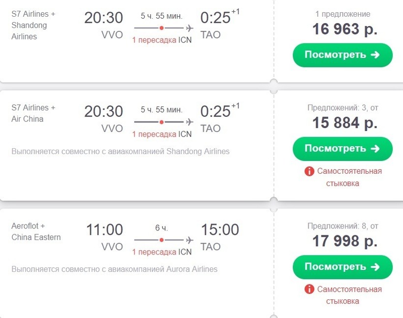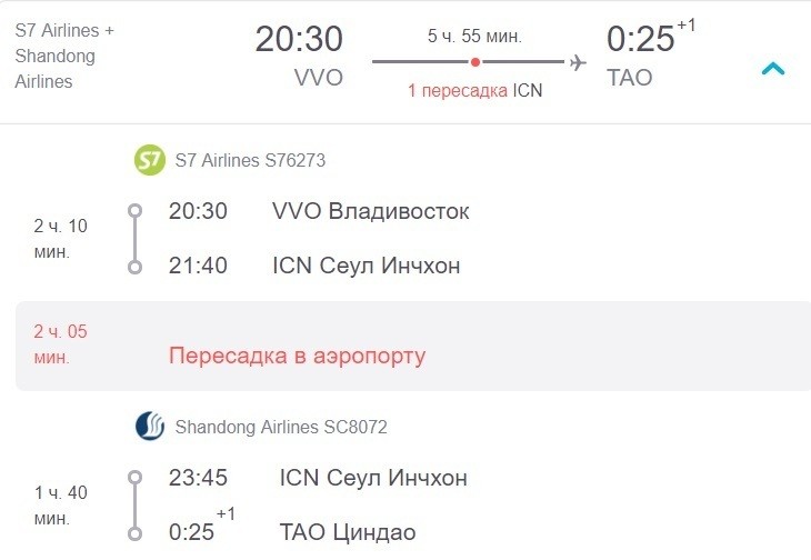 Прямых рейсов до Циндао нет. Нужно лететь с пересадкой. Ее можно сделать, например, в китайском городе Чанчунь.