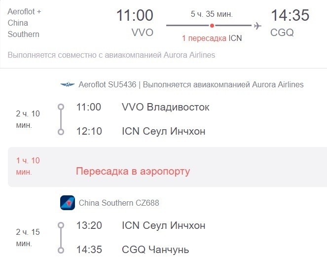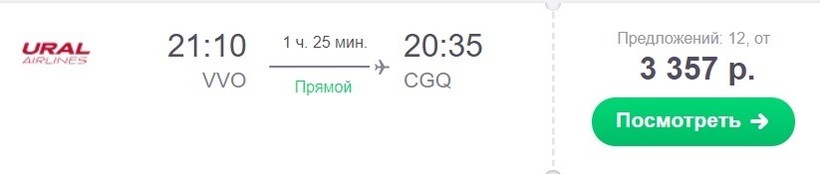 Самолет принадлежит компании Ural Airlines. В остальные дни вы можете долететь до Чанчуня только с пересадкой. Ее можно сделать, например, в Сеуле.