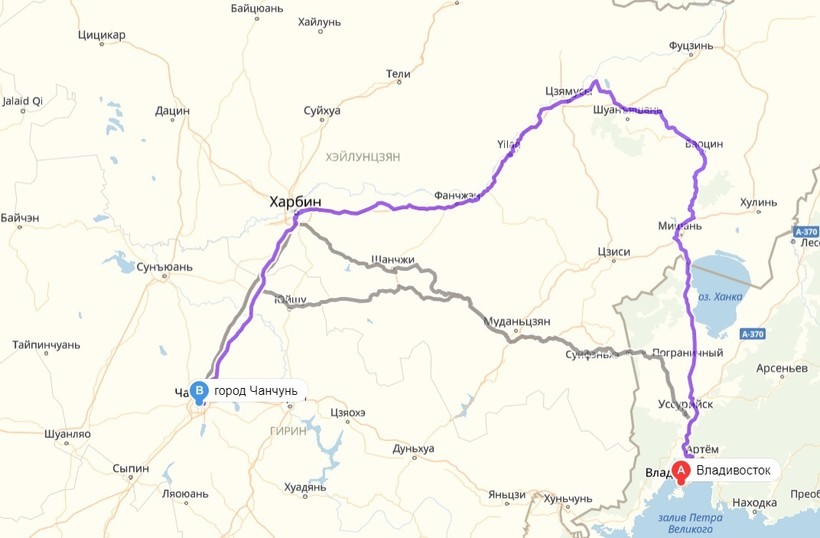 Расстояние между Владивостоком и Чанчунем составляет 536 километров или 333 мили по прямой и 764 километра или 475 миль по автодорогам.