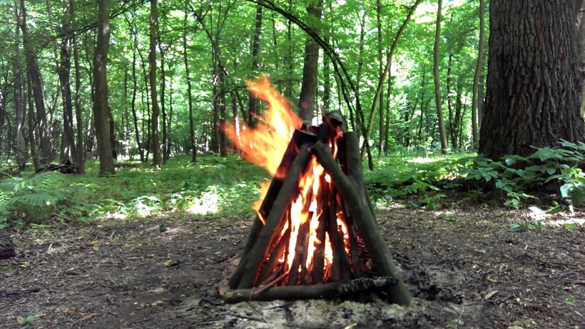 Если все подготовлено правильно, достаточно поджечь центр костра через небольшое отверстие между ветками, и все остальное загорится само. Для скорейшего распространения огня также можно с силой дуть на костер.