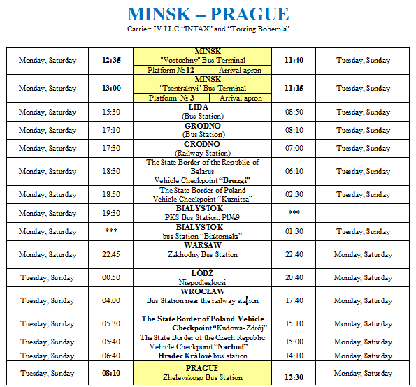 Между Вроцлавом и Минском курсирует один прямой автобус, который доступен два раза в неделю. Если верить сайту белорусской национальной компании Минсктранс, то сесть на этот автобус можно только в понедельник или субботу.Кстати, это автобус транзитный, что идет из Праги в белорусскую столицу и останавливается во Вроцлаве на главном автовокзале, который находится недалеко от железнодорожной станции, на десять - пятнадцать минут для посадки и высадки пассажиров.