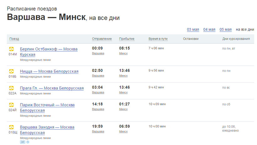 - Из Варшавы в белорусскую столицу отправляется ряд поездов международного сообщения. Время в пути - от семи часов.