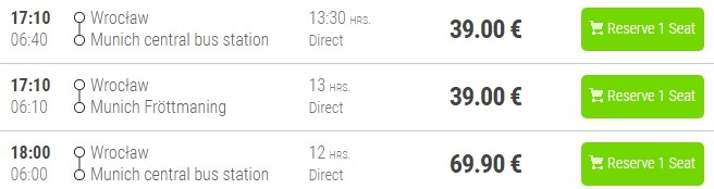 Одним из самых популярных способов проезда из Вроцлава в Мюнхен является автобус.