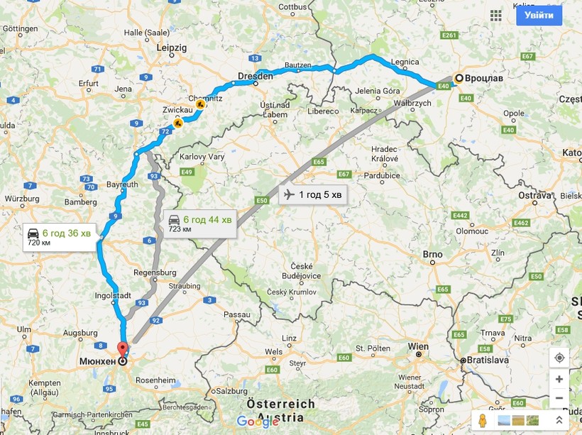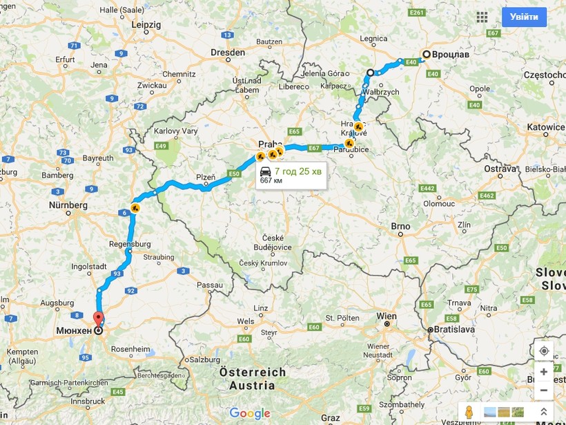 За семь-восемь часов из Вроцлава в Мюнхен можно добраться на легковом автомобиле, но это без учета остановок.