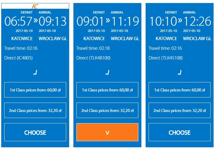 Билет во второй класс обойдется от 32 злотых (8 евро). Если вы хотите путешествовать первым классом, то придется выложить почти в два раза больше. Но нужно ли это вам? Польские поезда очень комфортные, и за путешествие продолжительностью в два часа, на мой взгляд, не стоит переплачивать.