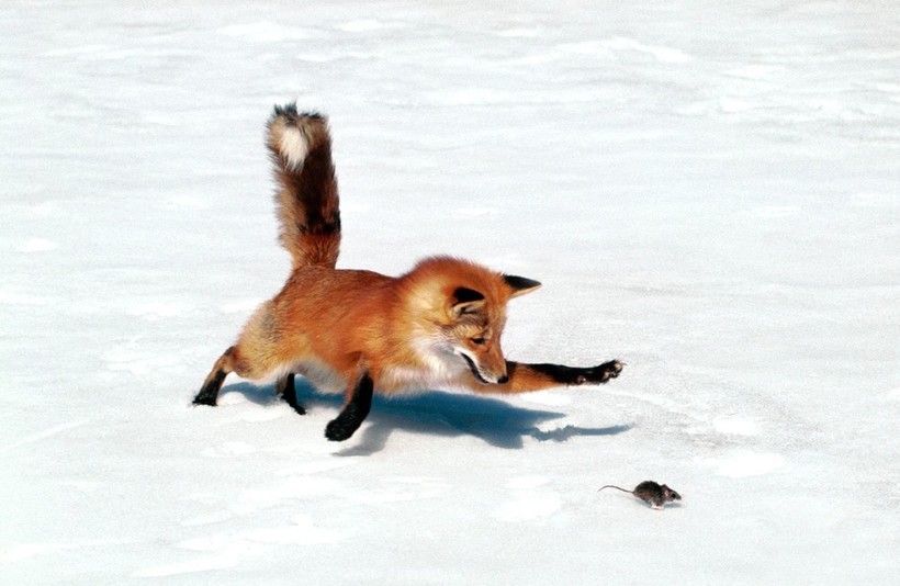 Под снеговым одеялом продолжают бодрствовать мыши — лучший обед для лисы. Она ловит их, ныряя в сугроб. От холода лиса спасается в норе, или в укромном месте, сворачиваясь клубком и укрываясь пушистым хвостом.