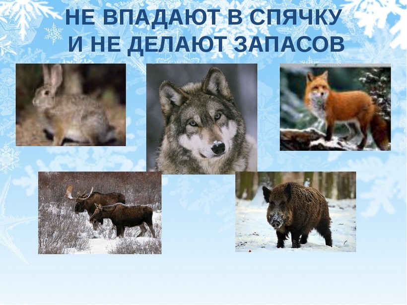 Зимуют звери по-разному. Одни перед холодами едят за троих, чтобы накопить побольше жира и залечь спать на всю зиму, другие делают запасы, которые спасут их от голода. Третьи просто «одеваются в тёплую шубу» и зарываются в снег.