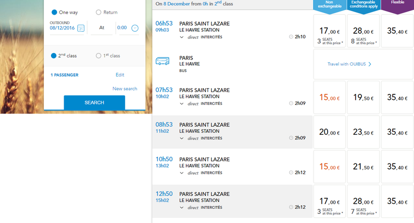 Ниже приведена информация о том, сколько часов вам потребуется, чтобы добраться от Парижа до Гавра, а также приведена примерная стоимость проезда (средняя цена билета) на том или ином виде транспорта.