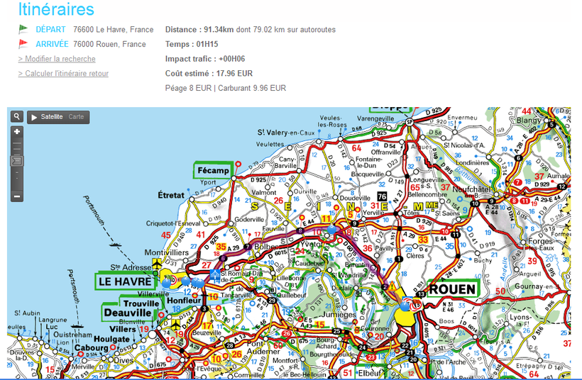 Маршрут из Гавра в Руан максимально простой. Сначала нужно выехать из Гавра по автостраде А29, свернув в районе Ивето на дорогу А150.