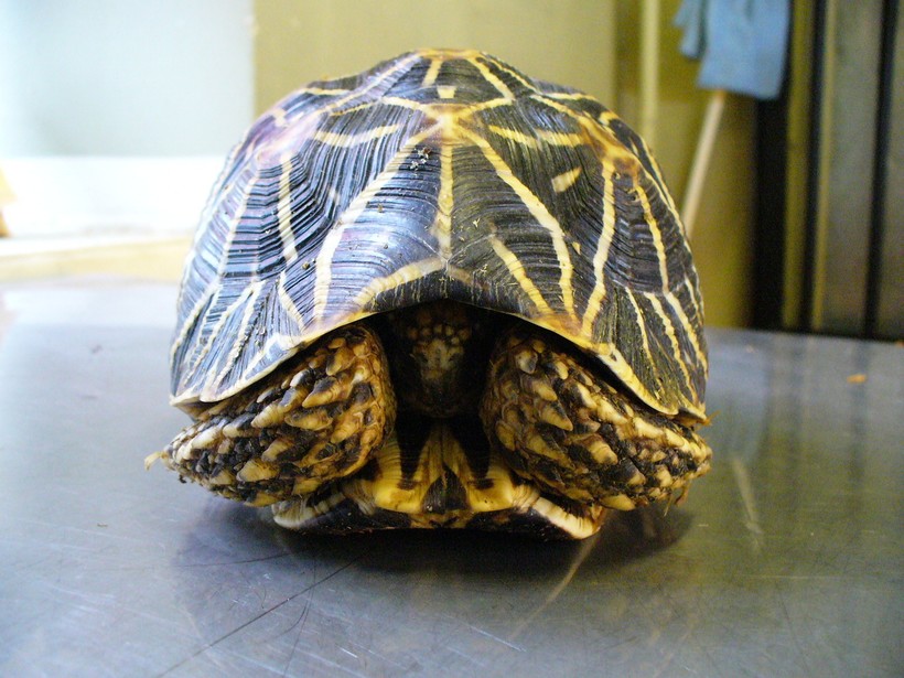 Еще один способ, как узнать возраст рептилии — осмотреть швы между щитками панциря. В самом начале спинной щит панциря светлый, а начиная с четырёхлетнего возраста он начинает темнеть. Молодые кольца приобретают цвет предыдущих, а те, в свою очередь, становятся ещё более тёмными. Чем темнее панцирь, тем черепаха старше.