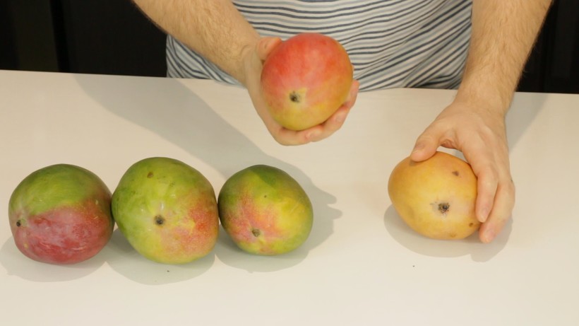 - от манго и плодоножки не исходят запахи, и если он пахнет кислым или спиртом;
