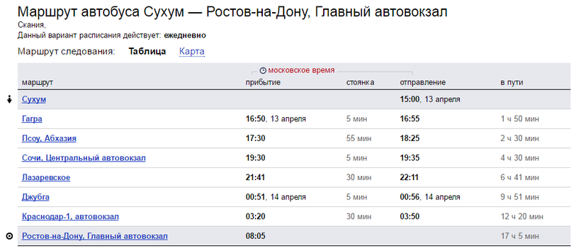 Есть еще один вариант поездки - автобус. Ежедневно через эти города проходит автобус Сухум - Ростов-на-Дону.