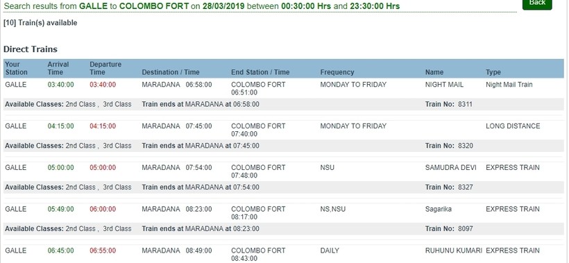 График можно посмотреть на сайте железной дороги Шри-Ланки.