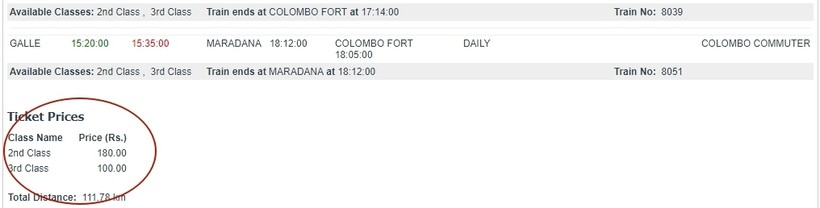 Если верить сайту железной дороги Шри-Ланки, в поездах по данному маршруту представлены две категории мест, по которым и определяется цена: