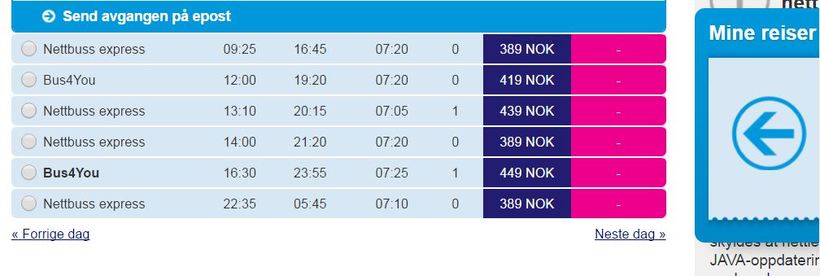 - Цена билета на автобус Nettbus составляет от около 44 евро до примерно 51 евро, в пересчете с норвежских крон.