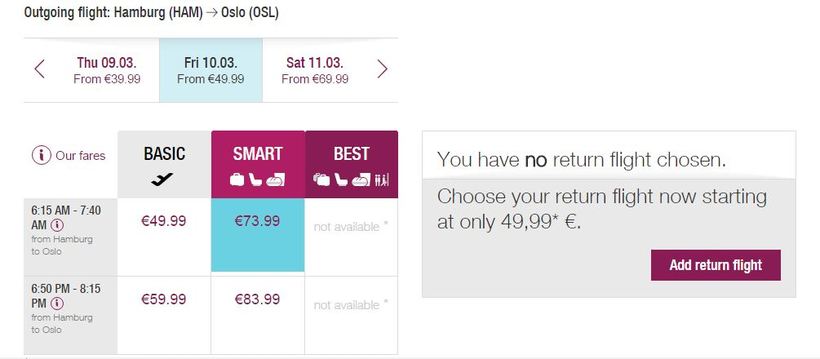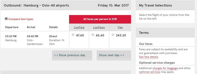 Пожалуй, это самый рациональный вариант в данном случае. В Гамбурге есть свой аэропорт, почитать о котором можно тут. Рейсы в аэропорт Осло выполняют такие компании: Norwegian, Scandinavian Airlines и Eurowings. Вот скриншот с сайта Norwegian: